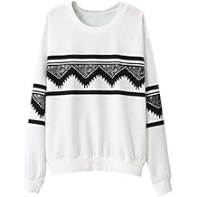 Gleader Mode Europe Femmes Ethnique Geometrique Imprime Blouse Sweat a Capuche Sweat-shirt Blanc S