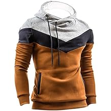 Gleader Nouveau Automne & Hiver Patchwork Chandail Camel a Capuche Gris Mince fit Epais pull polaire Vetements pour hommes L