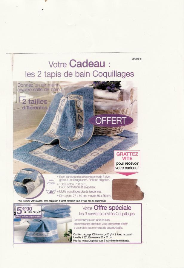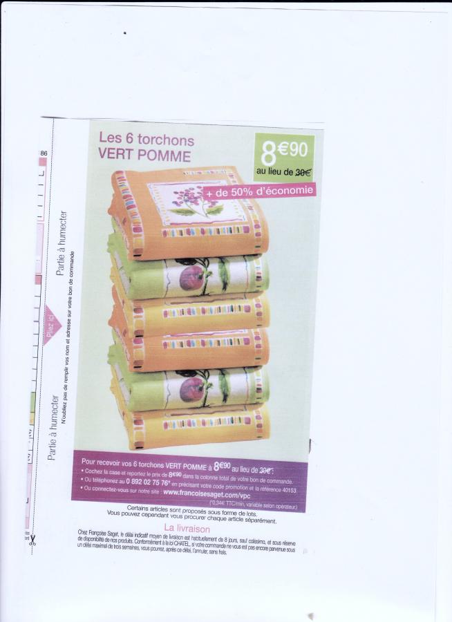 B brigita Nouveau au Club 19 Mai 2009 13 0 1 4 Novembre 2009 #1 2 tapis de bain offert code 4186 les 6 torchons vert pomme 8.90 au lieu 30 euros reference 40153 report paiment 2 mois par carte bancaire Dernière édition par un modérateur: 10 Novembre 2009