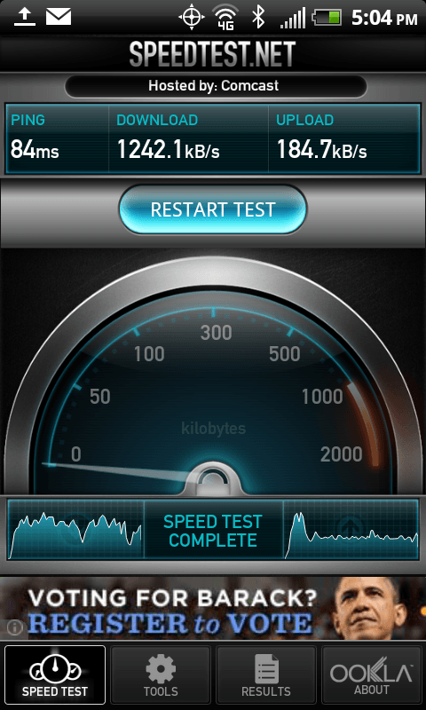 Une petite capture d'ecran que je viens de prendre avec mon mobile en piece jointe :mrgreen:, c'est du 4G (mais meme pas du LTE qui est plus rapide encore)