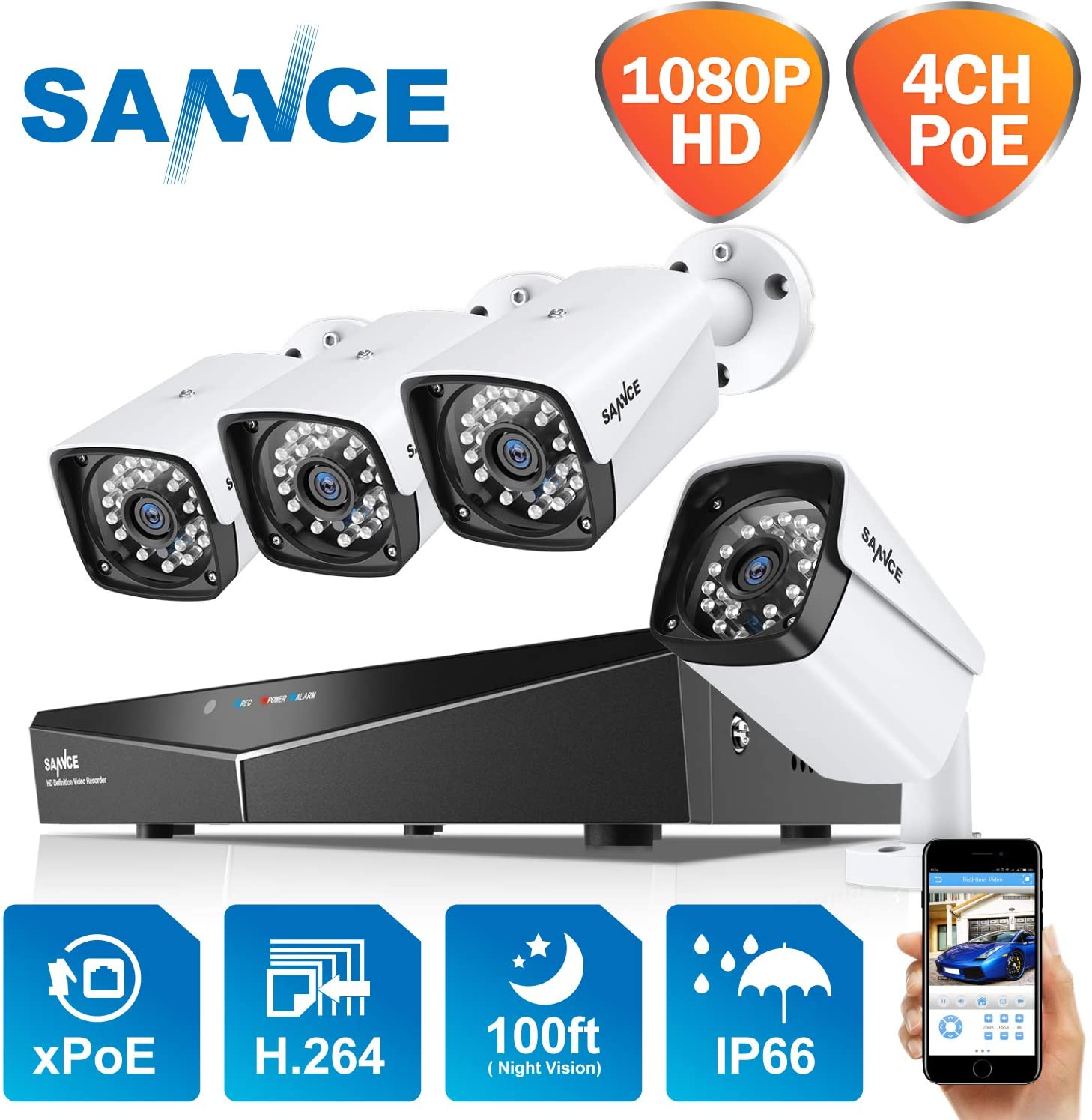 SANNCE POE kit de Surveillance No HDD avec 4CH NVR et 4 caméra Bullet 1080P 125,60 € au lieu de 156,99 € sur Amazon