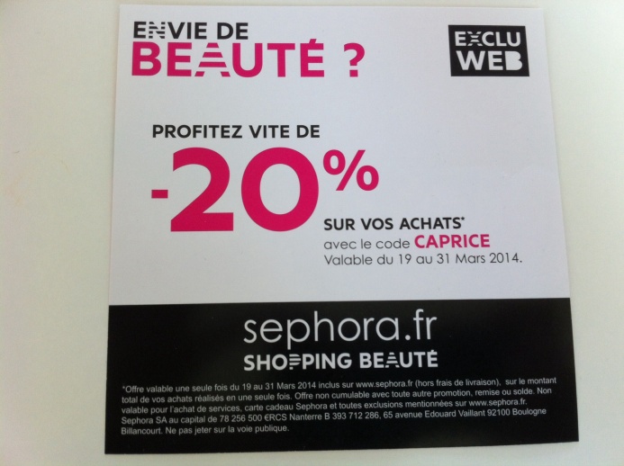 Sephora exclu web 20 pourcent du 19 au 31 mars