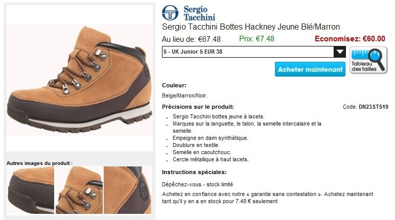 Sergio Tacchini Bottes chaussures Blé/Marron en daim à 7.48€ Au lieu de 67.48€