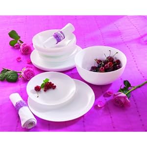 Composition: 6 Assiettes Plates 25 cm, 6 Assiettes Creuses 20 cm, 6 Assiettes Dessert 19 cm, 1 Saladier 21 cm