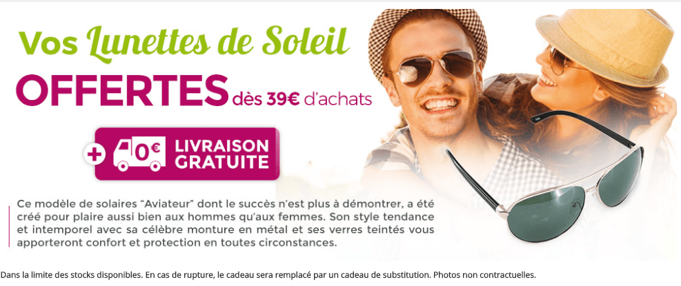 Shoppingnature : lunettes soleil en cadeau/39€ + fdp0 + code 10%