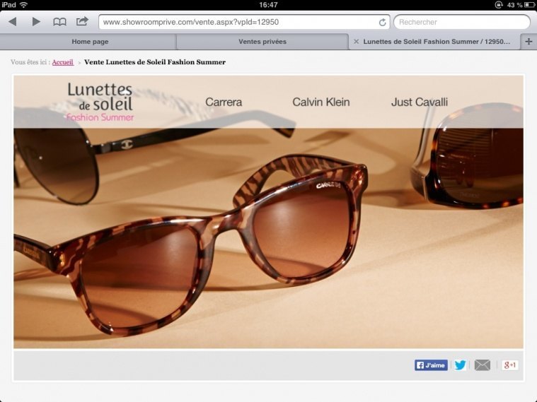 Actuellement sur showroom privée et jusqu'au mercredi 11 juin 8h des lunettes de soleil CK et autres à partir de 45€