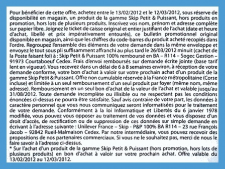fini SKIP 100% remboursé en 1 bon achat entre le 13/02/2012 et le 12/03/2012 dispo en magasin :icon_wink: