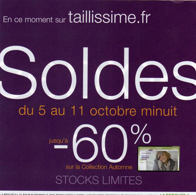 soldes chez taillissime du 5 au 11 octobre minuit .jusqu'à -60% sur la collection automnerockinbananaespérons que ca va bugger :-D