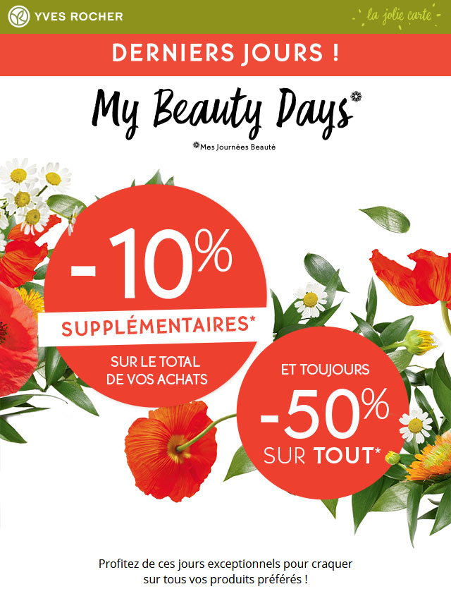 Jef a dit: -50% sur TOUT* et -10% supplémentaires* sur tous vos produits de beauté grâce au code promo : Voir la pièce jointe 43108 Codes promo : [Message caché] Cliquez pour agrandir...