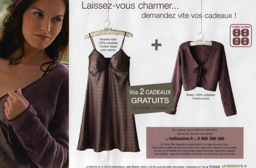 --35% sur toute la collection hiver cacailleet sur taillissime.fr et 2 cadeaux une nuisette satin couleur taupe à pois et son boléro tout doux couleur prune