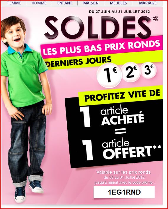 minou15 Habitué 5 Juin 2008 4 061 14 1 810 STRASBOURG 31 Juillet 2012 #1 tati 1 acheté - 1 offerte sur prix rond code 1EG1RND rockinbanana http://www.tati.fr/enfant.html Fichiers joints ta.JPG 77.2 KB · Affichages: 78 Dernière édition: 31 Juillet 2012