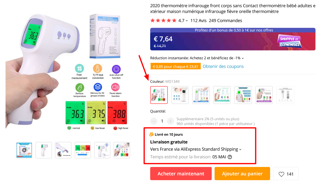 Je te propose un excellent prix pour un thermomètre infrarouge dont les avis sont tops ! De surcroit la livraison est gratuite et rapide, alors bon, il a tout pour plaire !