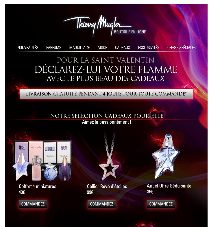 Thierry Mugler, livraison offerte sur 4 jours sans minimum