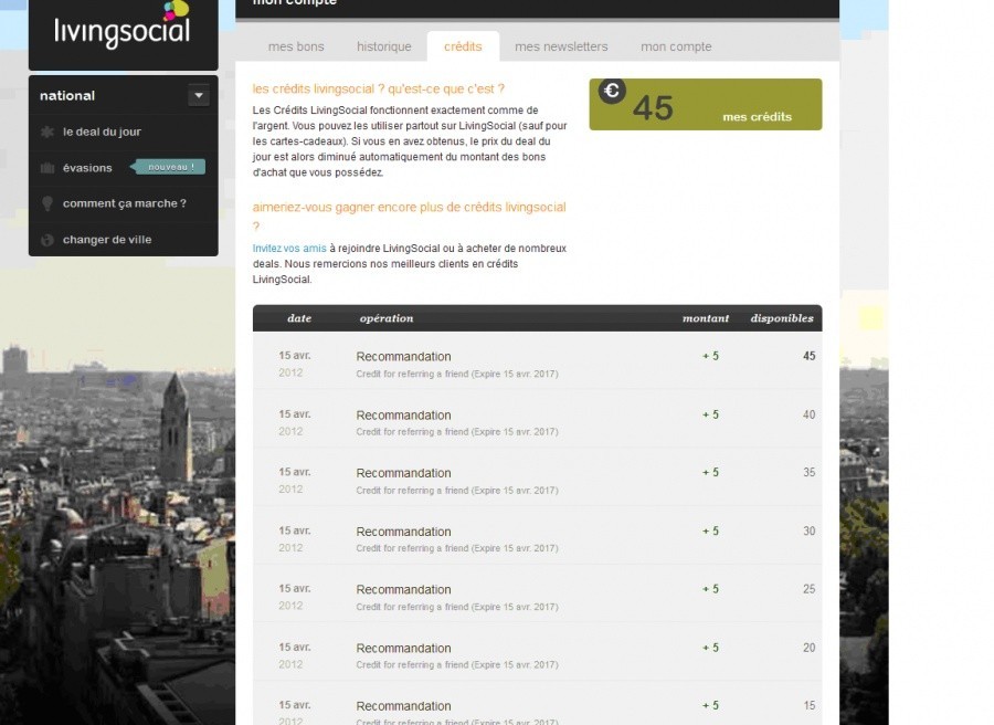 J'ai en tout 45€, je suis allée vite fait dans mon compte livingsocial, je regarderai de plus près ce soir...