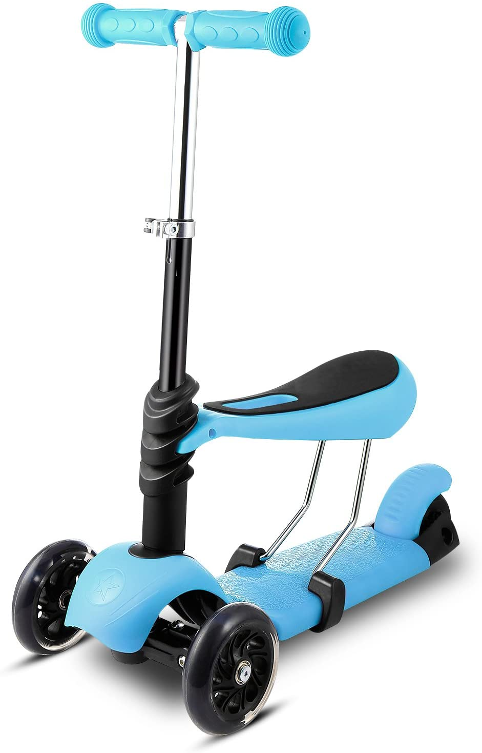 Profun Trottinette Enfant 3-en-1 3 Roues Clignotants à LED avec Siège Amoviblet & Guidon Réglable pour Les Bébés/Enfants 1-8 Ans (Bleu