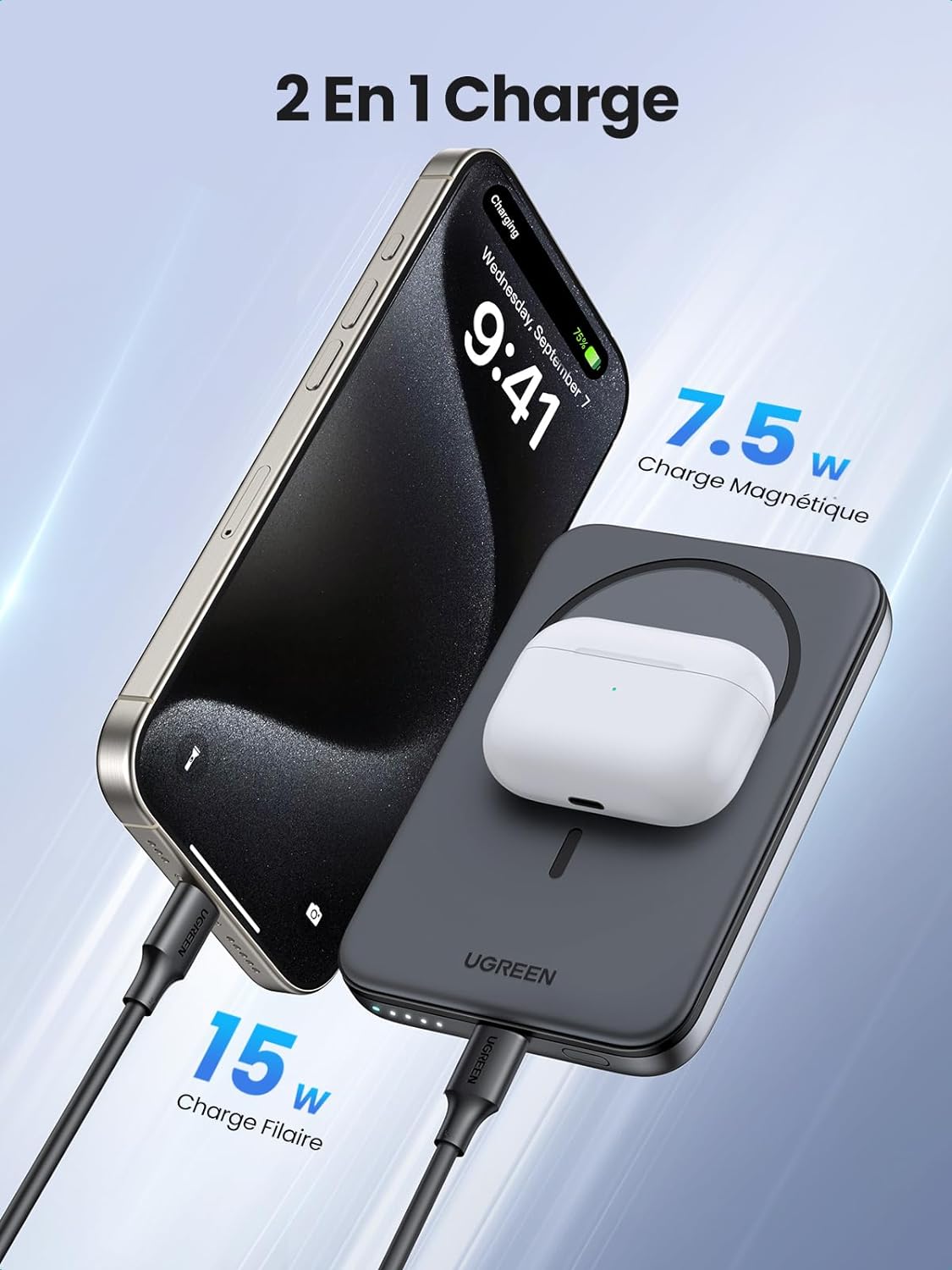 - Visitez la page UGREEN Nexode Mini Batterie Externe Magnétique sur Amazon.