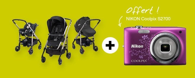 Une offre qui peut être intéressante si vous recherchez une poussette, en fait sur Pixmania pour l'achat d'une pousette de la sélection, on vous offre un appareil photo Nikon Coolpix S2700 (vendu 64.90€ ce jour).Pour en profiter il faut ajouter au panier la poussette de votre choix, ainsi que l'appareil photo Nikon, et ne pas oublier de mentionner le code promotionnel Pixmania : PHOTO1.L'offre est valable jusqu'au 07/04/2014 minuit.