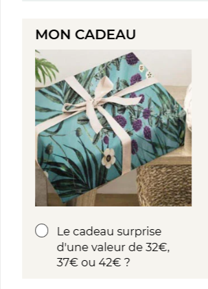 3. Dans “MON CADEAU”, coche “Le cadeau surprise d’une valeur de 32€, 37€ ou 42€”