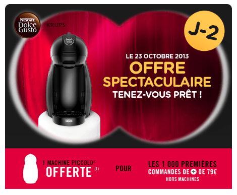 Pour les 1000 premières commandes d'un montant de 79€ ou plus (hors machines), une machine PICCOLO® Noire sera ajoutée GRATUITEMENT(2) au panier.
