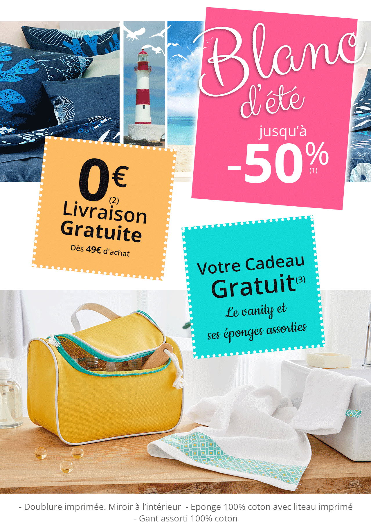 (1) Jusqu'à -50% sur la sélection blanc été : offre valable jusqu'au 09/06/2020 inclus, dans la limite du stock disponible.