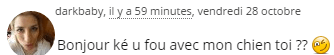 darkbaby Habitué 4 Mai 2012 88 496 16 573 10 810 42 28 Octobre 2016 #2 Bonjour ké u fou avec mon chien toi ?? Joyeux Anniversaire Mama Les réactions: greg, dahrres, Sonia et 1 autre personne