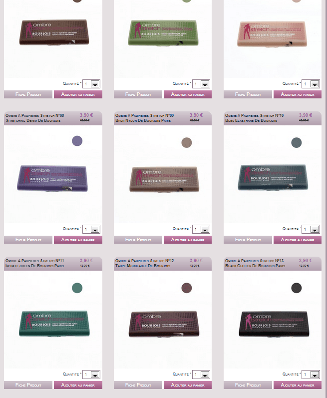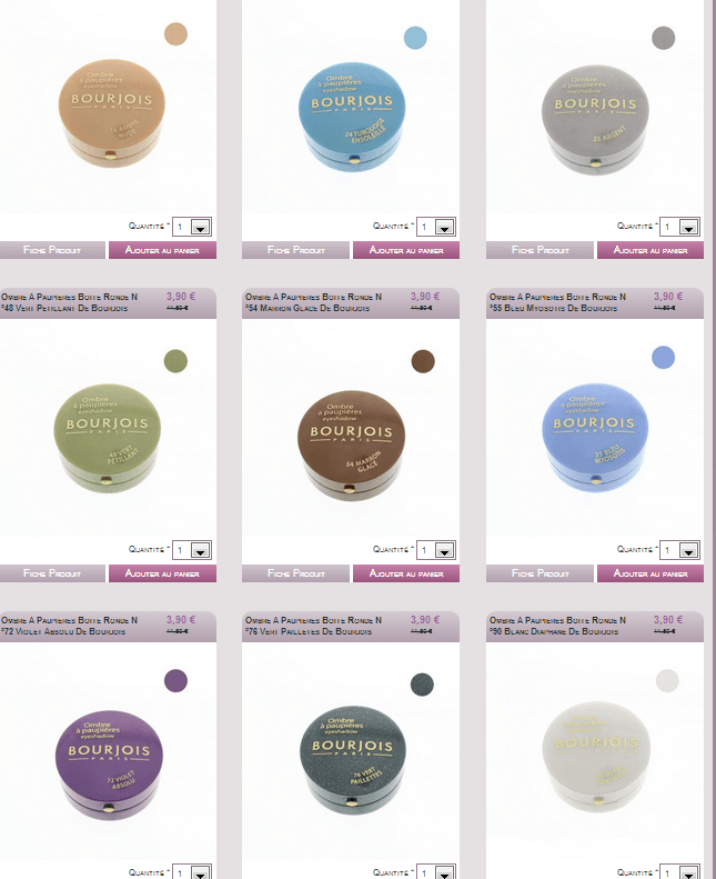 non en fait, il y a les petites boîtes rondes qui me tentent mais bon, j'ai assez de fap...mais à 3,90 euros, ça vaudrait le coup...pareil les blush Bourjois, au top...tu le sais So :D