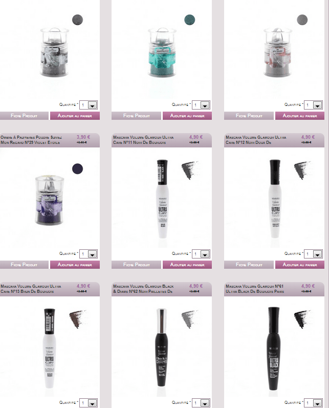 Grand choix de produits Bourjois et Une Beauty, réductions de 50% à 70%