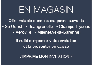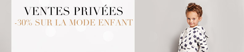 Les articles concernés par cette offre sont signalés par une pastille de couleur violette pour les produits Mode à -40% et par une pastille de couleur rose pour les produits Enfant à -30%. Offre non cumulable avec toute autre remise ou promotion en cours en ligne et en magasin.