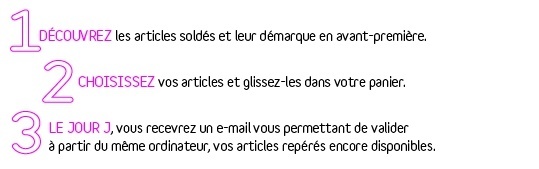 j ai reçu un mail hier soir pour dire que je pouvais deja consulter les soldes en avant premiere et mettre les articles dans mon panier et ensuite attendre le jour j à 8h.