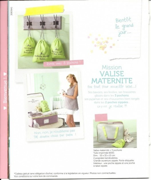 - Une valisette maternité offerte avec ses rangements, (taille de 40 x 30 x 13 cm)