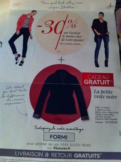 Veste noire et -30% sur l'article le moins cher (FDP payants)