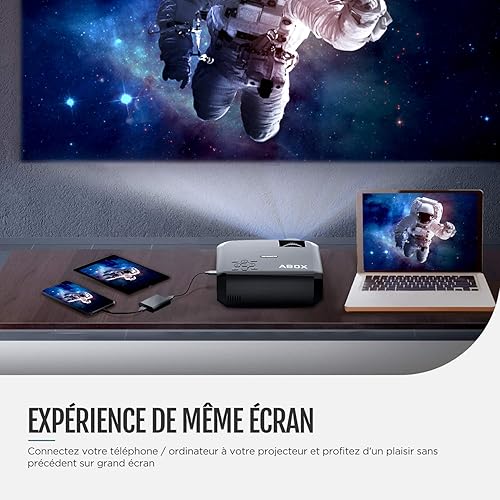 • 【Excellente configuration】Le projecteur ABOX A2 avec technologie LED avancée offre une résolution HD native de 1 280 x 720p, soit 2 fois plus clair que les autres produits 480p sur le marché. Rétro projecteur de 3000 lumens avec un rapport de contraste de 3000: 1