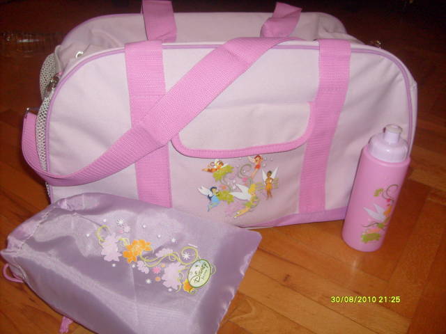 Merci pour l'information!J'ai reçu mon colis aujourd'hui, le sac "Fée Clochette" est absolument craquant avec sa petite gourde et son petit pochon! Ma puce va s'en servir pour son cours de danse, elle l'adore!!