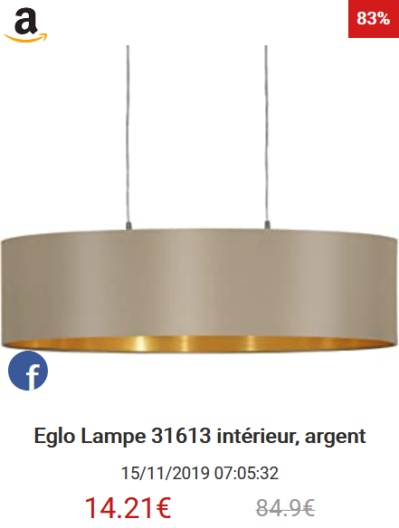 deal Viteeee Lampe Eglo Argent à 14,21 EUR au lieu de 84,90 EUR sur Amazon