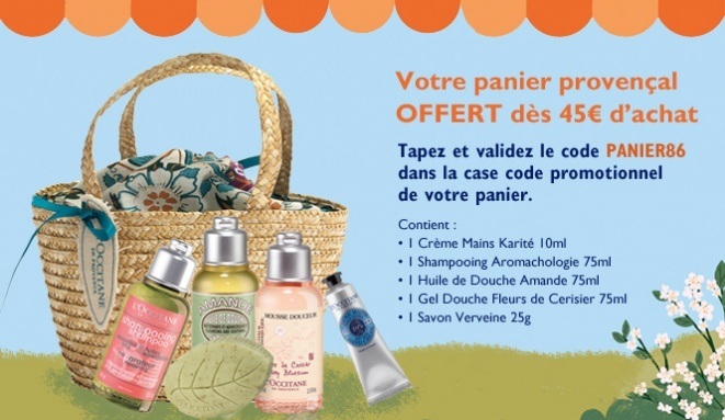 Tout est dans le titre un panier offert avec 5 produits (petit format) mais frais de port payants Ce sont d'excellents produits
