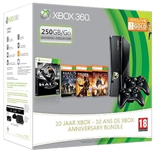Console Xbox 360 250 Go + 2 Manettes sans fil noire pour Xbox 360 + Halo combat evolved Anniversary + Halo Reach + Fable III + Gears of War 2 + Carte Xbox Live Gold 3 mois