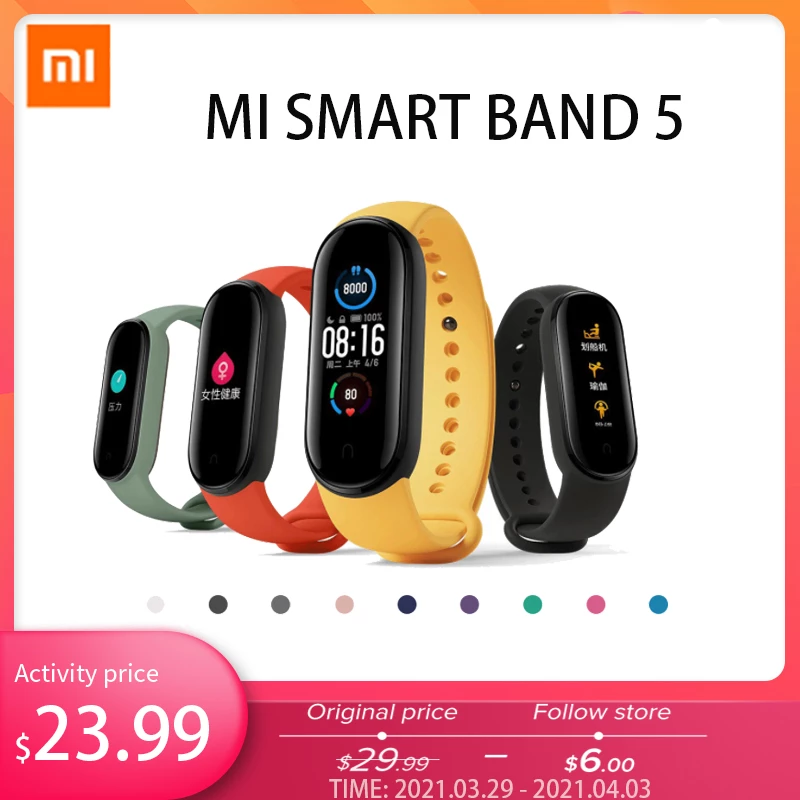 GO 26.06€ 30% de réduction|Xiaomi – Bracelet connecté Mi Band 5, Version globale, écran 9 langues, moniteur de fréquence cardiaque et d'activité physique, Bluetooth | AliExpress