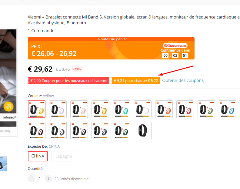 deal Xiaomi – Bracelet connecté Mi Band 5, Bluetooth Version globale, + 1 bracelet 21,71€ sur Aliexpress