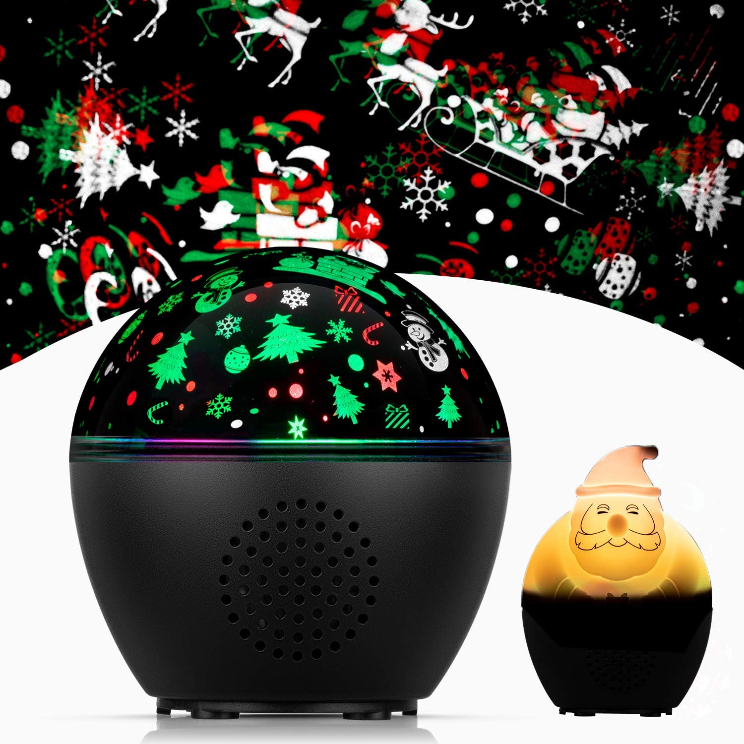• Haut-parleur Bluetooth et Rotation à 360°: Haut-parleur Bluetooth intégré, connectez-vous à votre téléphone intelligent ou tablette via Bluetooth, ou un lecteur de carte via le port pour écouter de la musique ou une histoire au coucher. La lumière du projecteur peut tourner à 360 °, vous pouvez choisir de tourner dynamiquement ou de devenir statique, il suffit de changer la vitesse via la télécommande. (Les lumières et les haut-parleurs peuvent fonctionner séparément.)