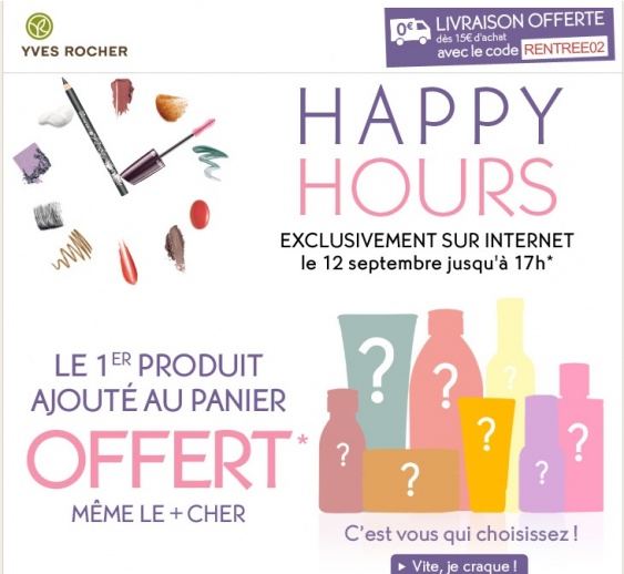 YR Happy Hours premier produit gratuit