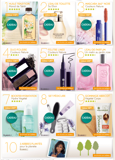 kdo yves rocher Bonjour,1 kdo offert à choisir parmi les 10 proposés Yves Rocher, cosmétique végétale, parfums, maquillage, beauté naturelle=