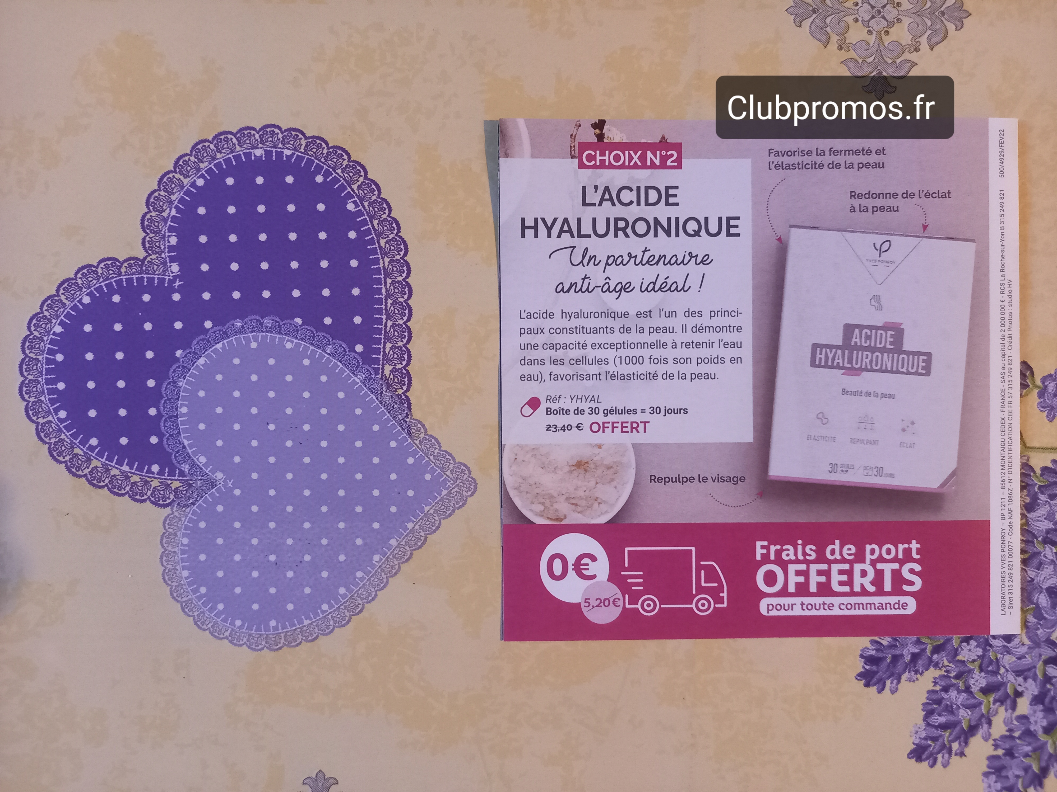 [Message caché] de chez Yves Ponroy qui donne en cadeau ? pour toute commande soit une lampe de lecture, avec 3 niveaux de luminosité, couleur : blanc, fonctionne avec 4 piles ? AAA 1,5v (fourni) et un câble USB (fourni) ou soit une boîte d'Acide Hyaluronique, 30 gélules/30 jours, valeur : 23,40€, voir photos ?. Plusieurs produits en promotions sur leur site.